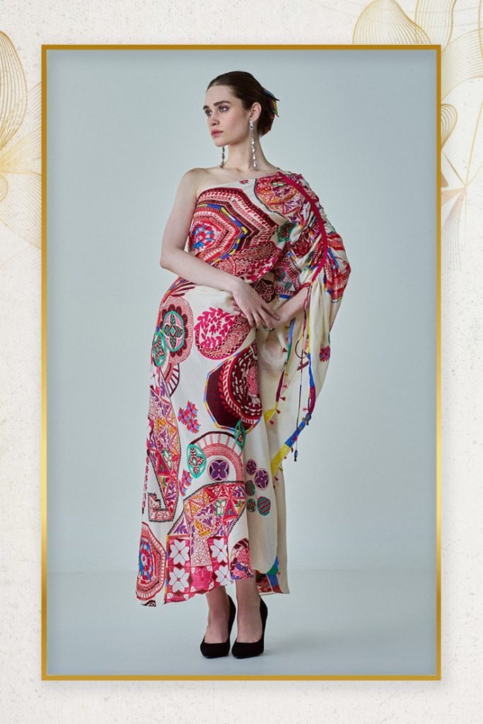 For Her, we recommend a paisley-printed one-shoulder kaftan by Saaksha & Kinni, offering an amalgamation of comfort and flair.