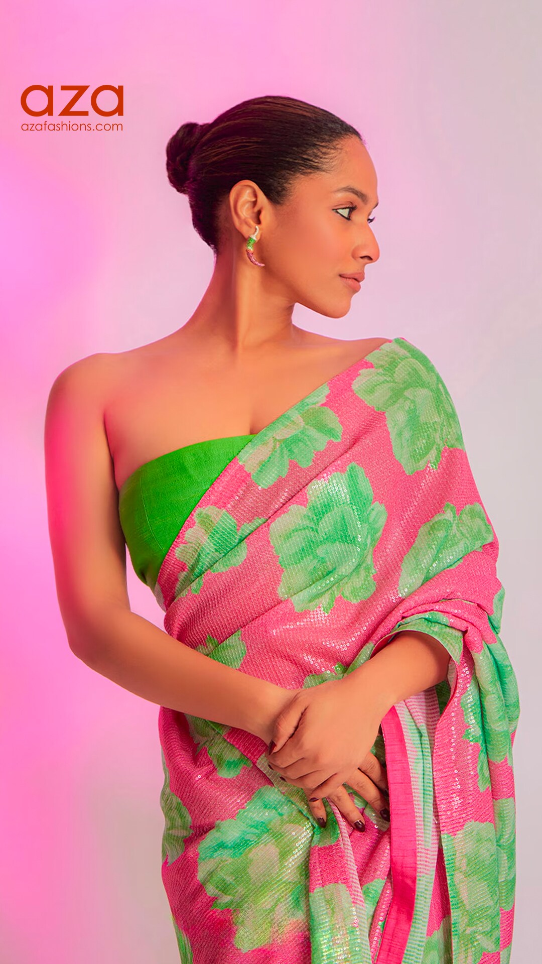 Bask in the limelight with this spring edition sequin sarees, a radiant choice.