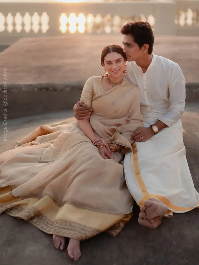 Aditi Rao Hydari tied the knot on 16th September with Siddhartha in a Sabyasachi gold tissue lehenga. Check out all the other times she stunned in ethnic masterpieces.