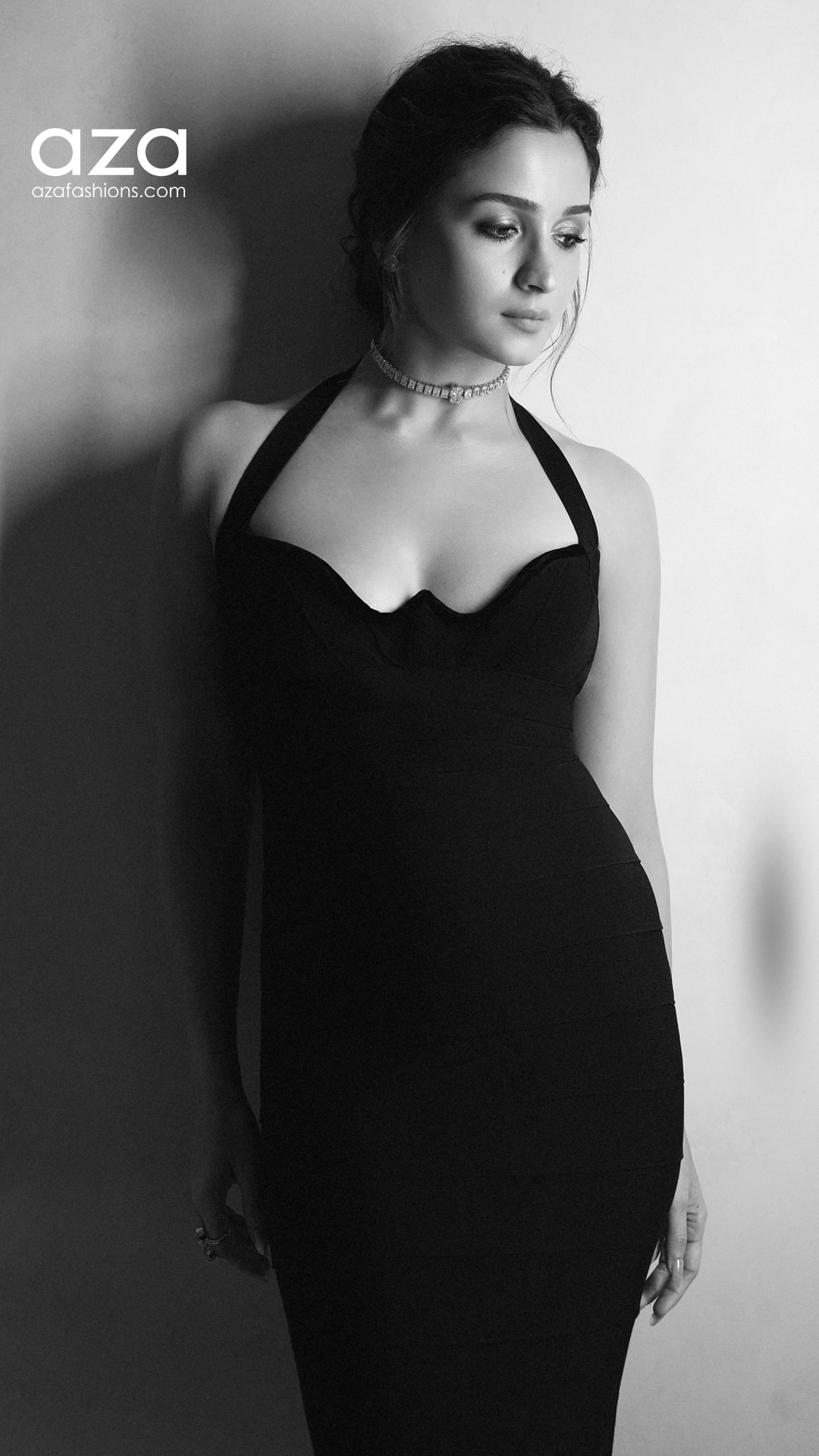Shining in a sleek Aisha Rao black gown, Sanya Malhotra celebrates her Best Actor Female win for Mrs with timeless grace and glamour.