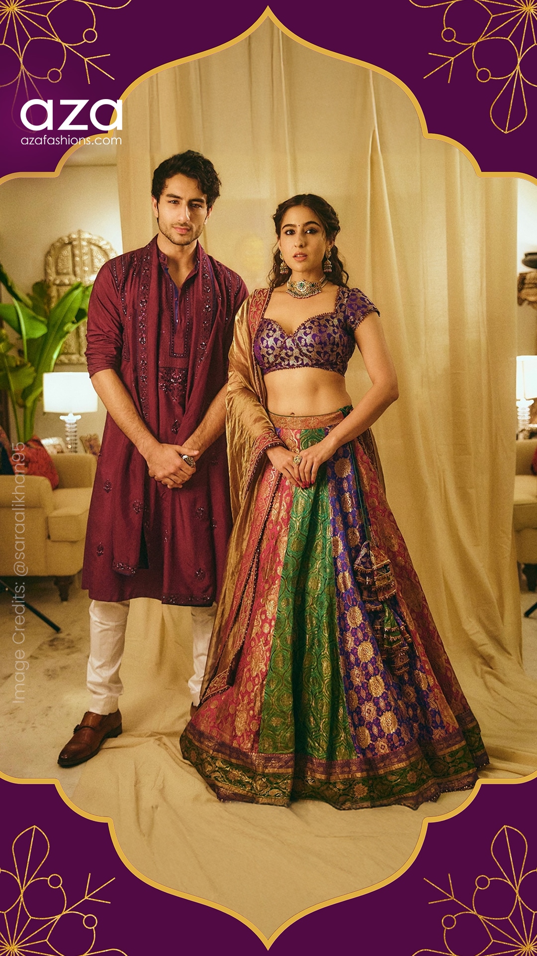 A timeless DiyaRajvvir kurta set with some green embroidery will suit the festive mood perfectly.