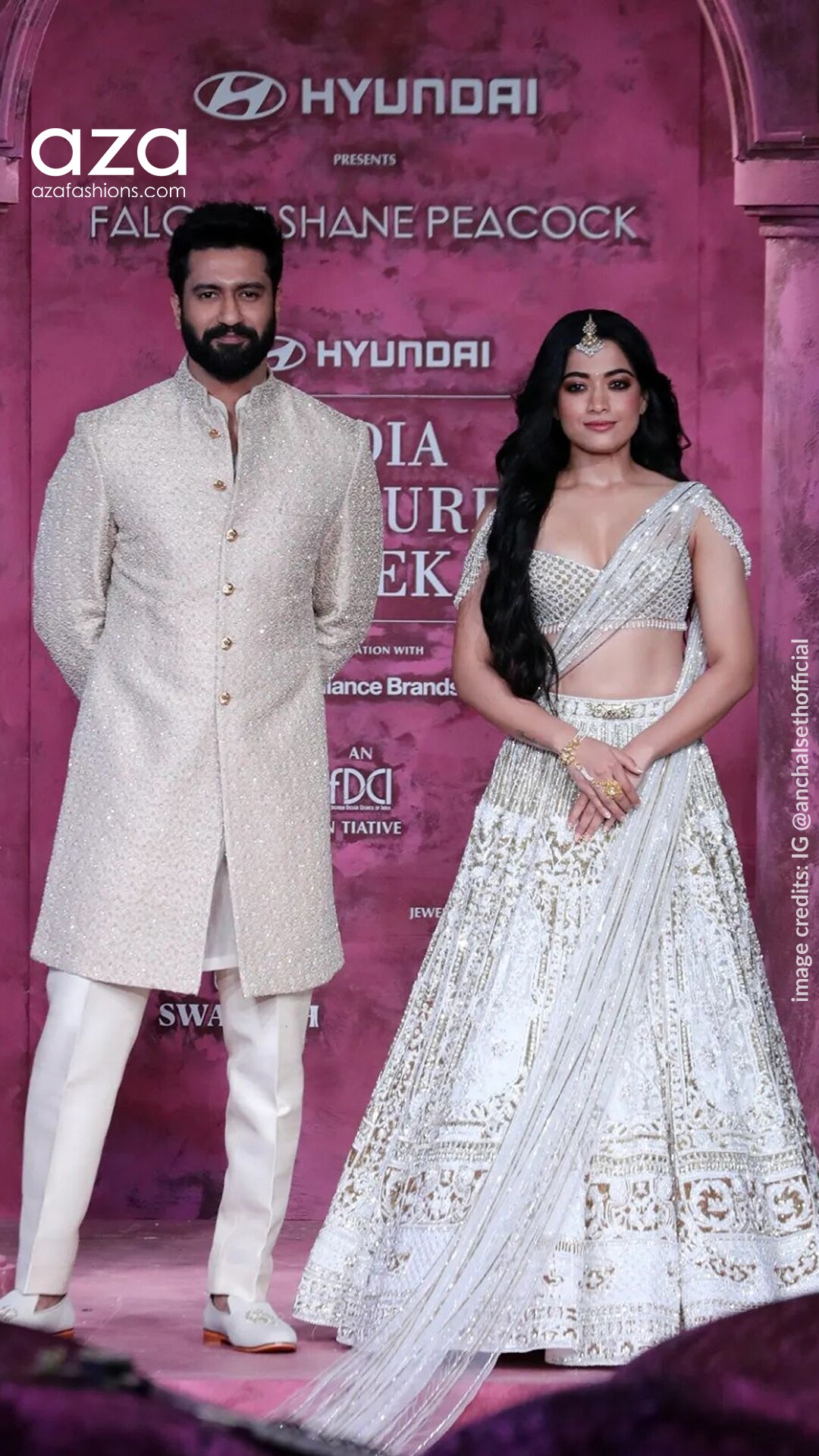 Vicky Kaushal and Rashmika Mandanna turned showstoppers for Falguni Shane Peacock in dreamy regal attires.