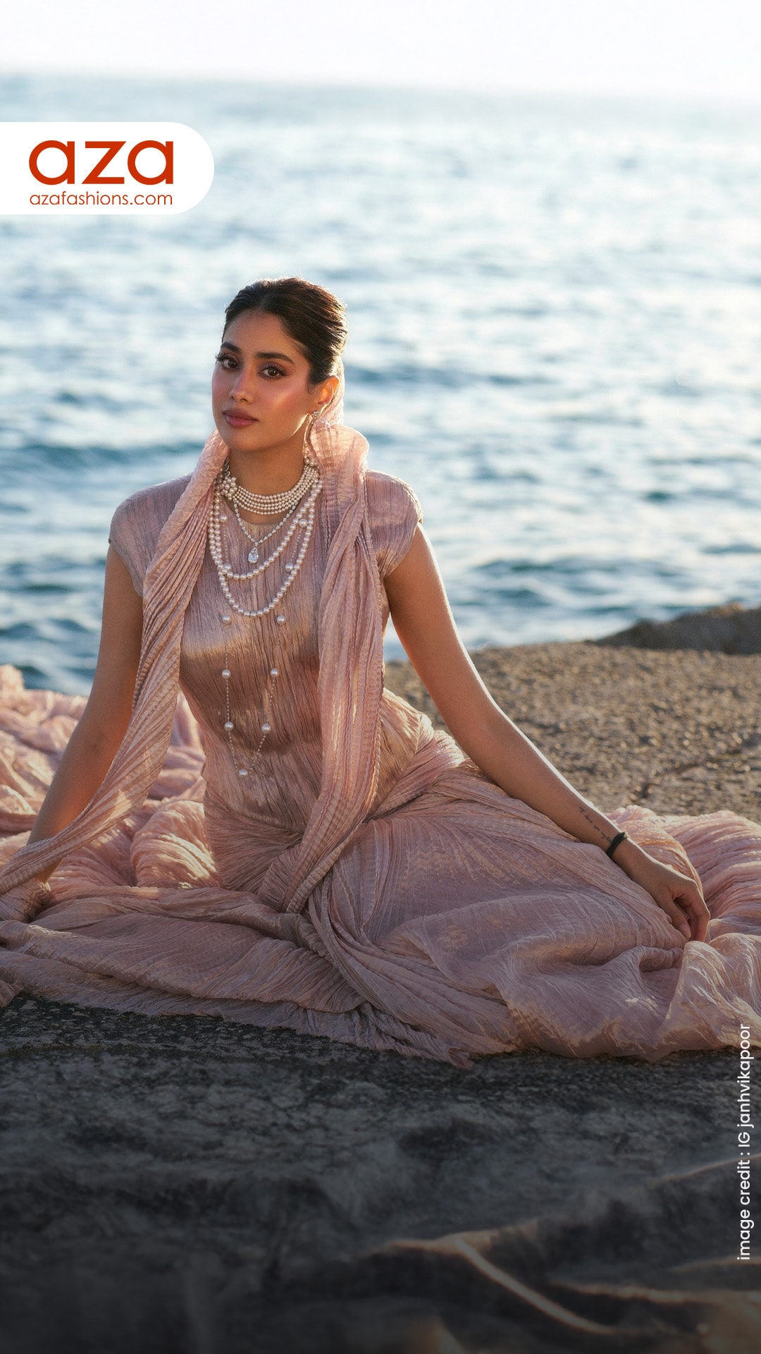 In a Tarun Tahiliani tissue skirt and corset, the Dhadak actress looked radiant in soft pink.