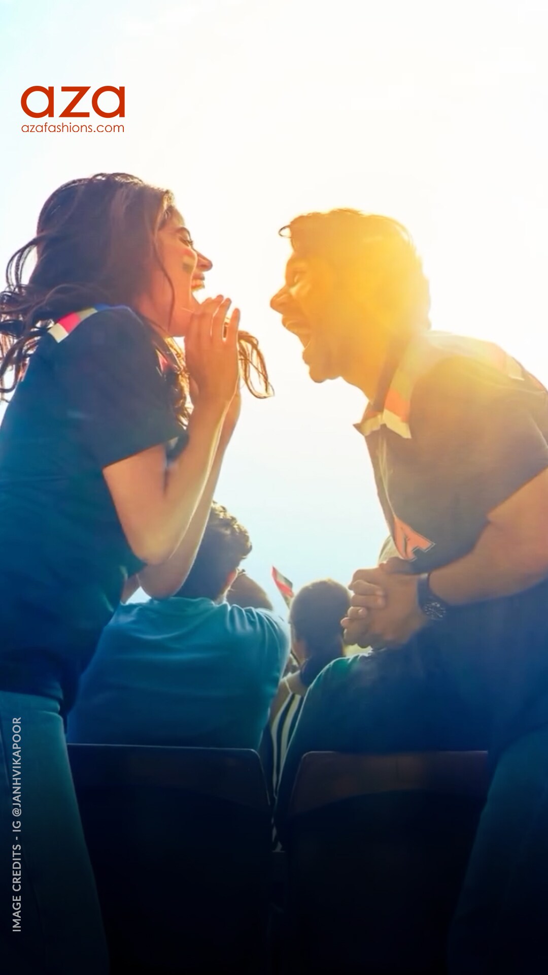 Check out Prints by Radhika's coord lehenga set with a custom-made pearl cricket choker adorned by Janhvi Kapoor. #mrandmrsmahi