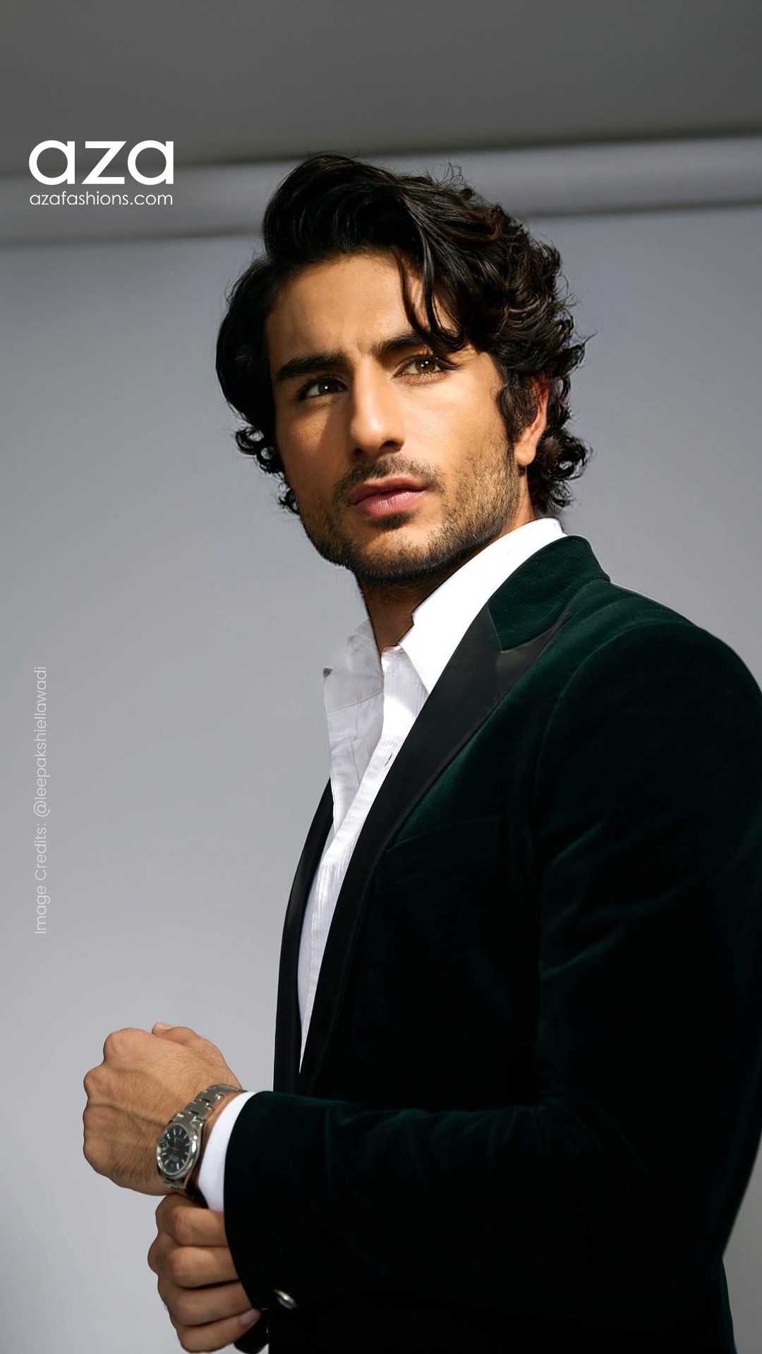 The star strikes a pose in an ivory tuxedo by Amit Aggarwal that spells elegance.