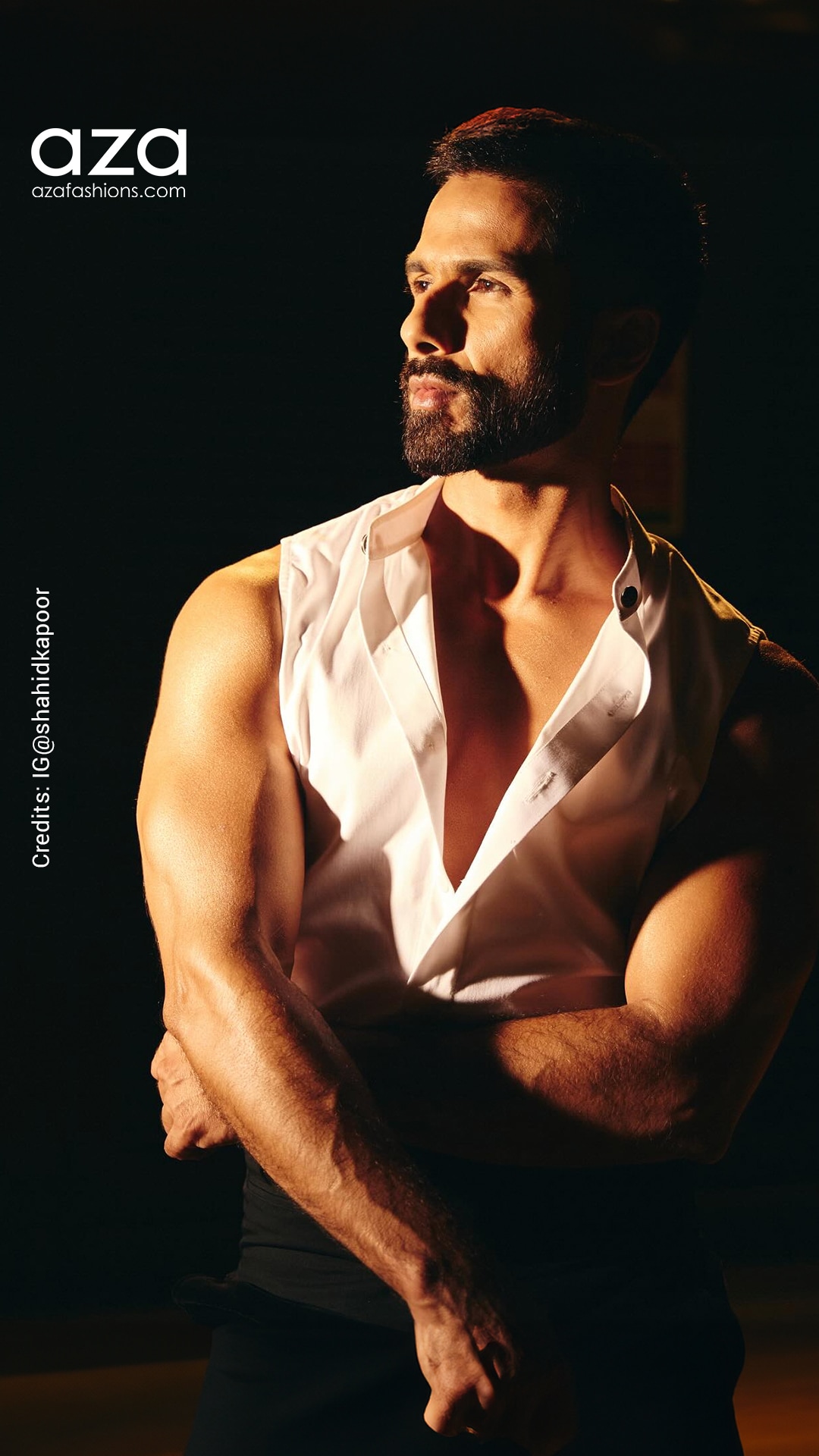A brown leather jacket, jeans, and Shahid’s signature attitude! This look is all about rugged charm with an edge.