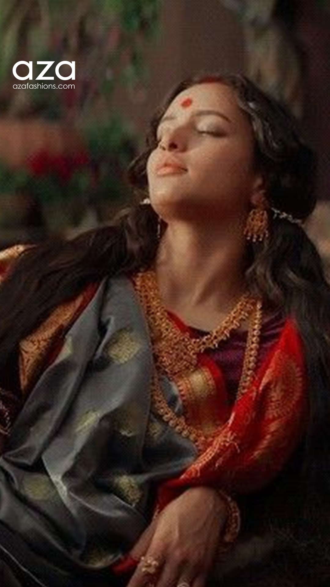 Put on a grey cotton silk saree and drape it Bengali way. Pair it with a golden jewellery set and fan yourself with peacock feathers.