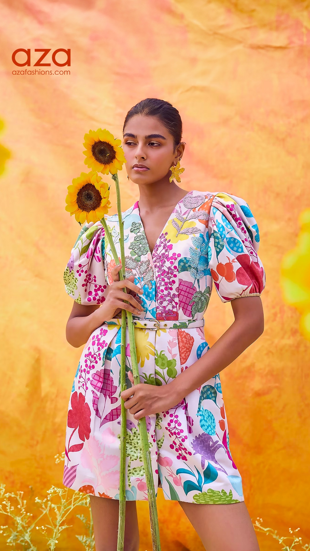 Stun everyone in these floral geometric patterned lehenga set at Aza Fashions.