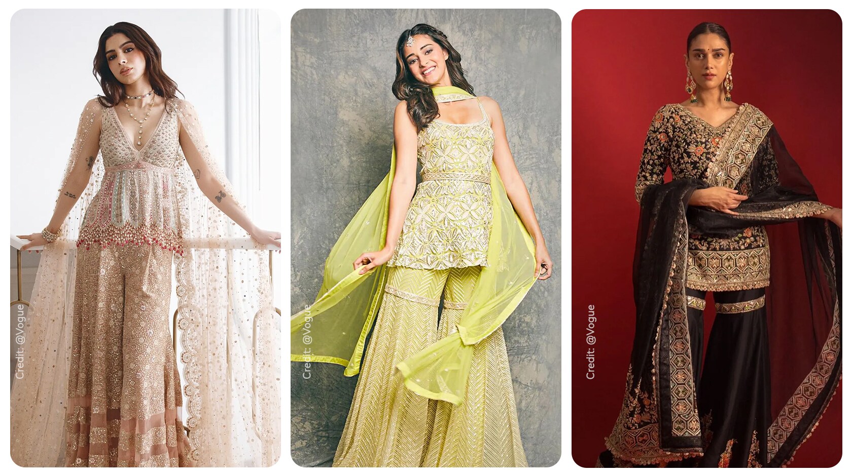 An Indian wedding is a series of distinct events, each with its own mood and style. Here’s how to select the best sharara set for the key pre-wedding ceremonies.