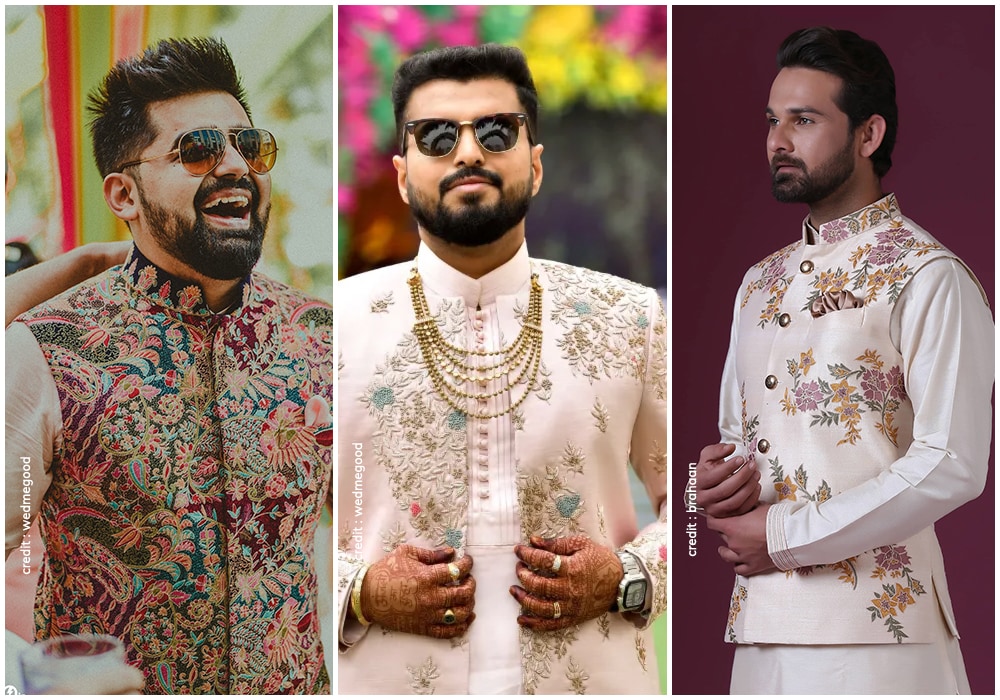 - For a Sangeet Night: This is the time to experiment with bolder colors and patterns. A green Nehru jacket or even a floral print can add a playful yet stylish touch to your Sangeet outfit.