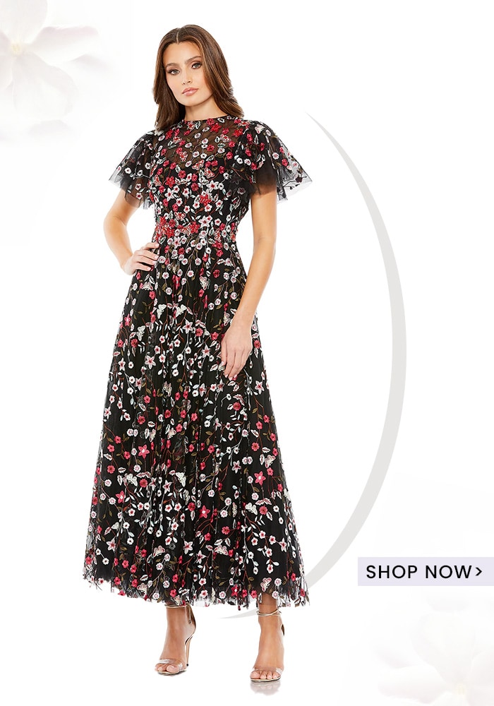 Black tie events usually take place in the evening and are quite formal. So, when shopping for wedding guest dresses, you can look for maxi dresses or floor-length satin gowns that pair well with such events. Evening gowns by Deme by Gabriella are ideal for such events as they strike the perfect balance between comfort and style. Ensure you elevate them with minimalistic pearl and diamond jewelry to match the tone of the wedding party. Complete the look by adding heels or stilettos but if you are sure you are going to dance your heart out at the event, you can choose dressy flats or ballerinas.