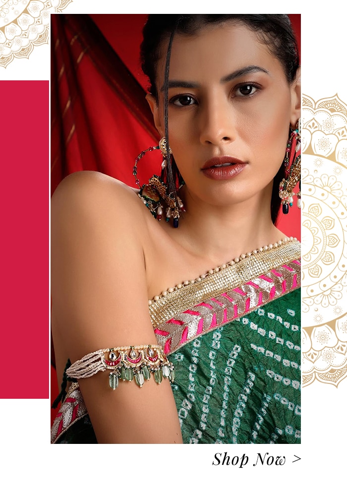 Worn on the upper arm, Baju Bandh is a vital factor in building your wedding jewellery set. A traditional bridal gem, it symbolizes good omen by warding off evil spirits and protecting its wearer. To add mystique to your look, pick a Baju Bandh embellished with diamonds, pearls and colourful stones for some classic elegance.