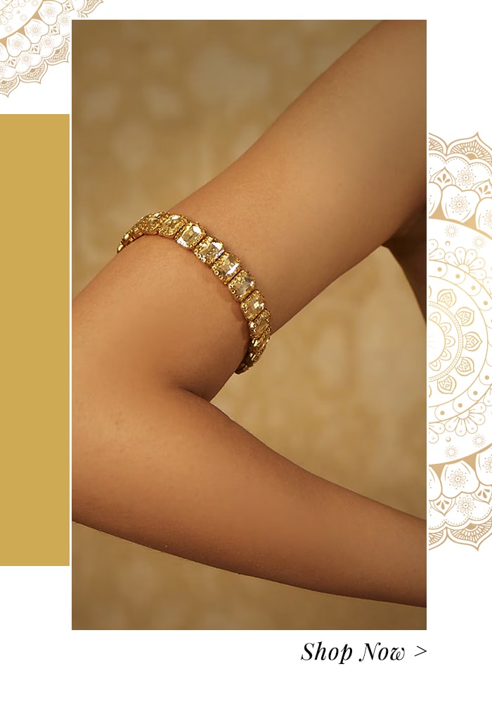Pachelis, Kadas or bangles, are the most crucial part in completing the bridal look with grace. While symbolizing a deep cultural meaning, bangle sets decorated with colorful embellished stones are a way for a bride to express her personal style. You can either go for a bundle of bangles or a pair of ornamented bangles or bracelets to add regalness to your wedding wardrobe.