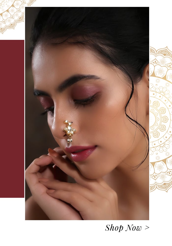 A symbol of beauty, mystery and grace, the Nose ring or the Nath is more than just Indian bridal jewellery. A beautiful cultural representation, nose rings add timeless grace to your overall look. Choose a heavy oversized Kundan nose ring or a subtle thin loop depending on your wedding look.