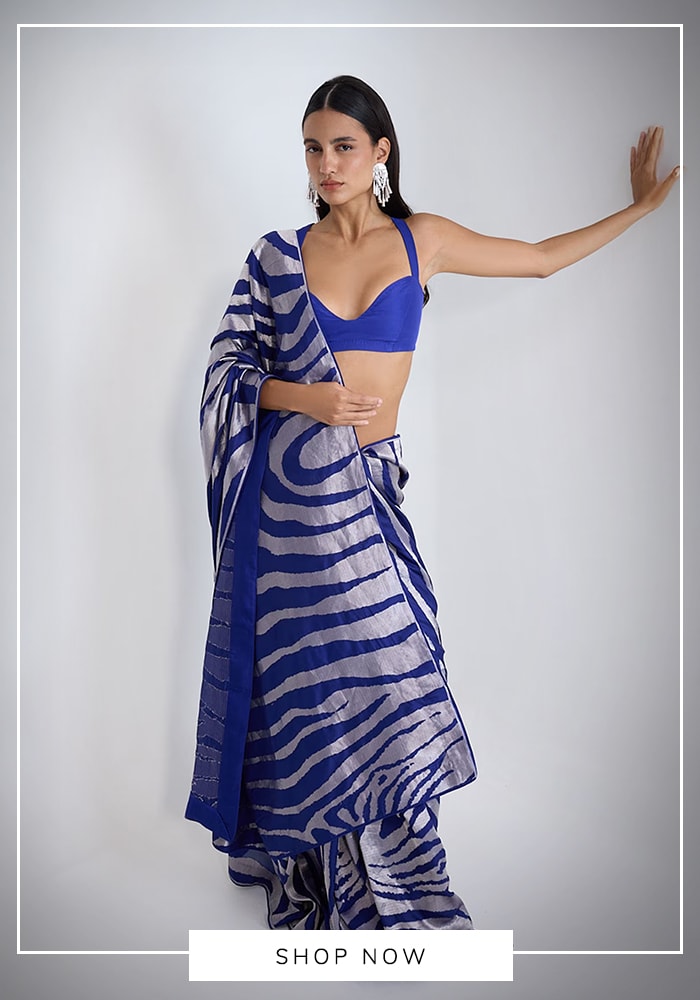 Her creations fuse tradition with contemporary sensibilities, turning classic textiles and motifs into modern, statement-making ensembles. Each piece is thoughtfully crafted to balance structure and fluidity, giving women a sense of strength and grace as they move.