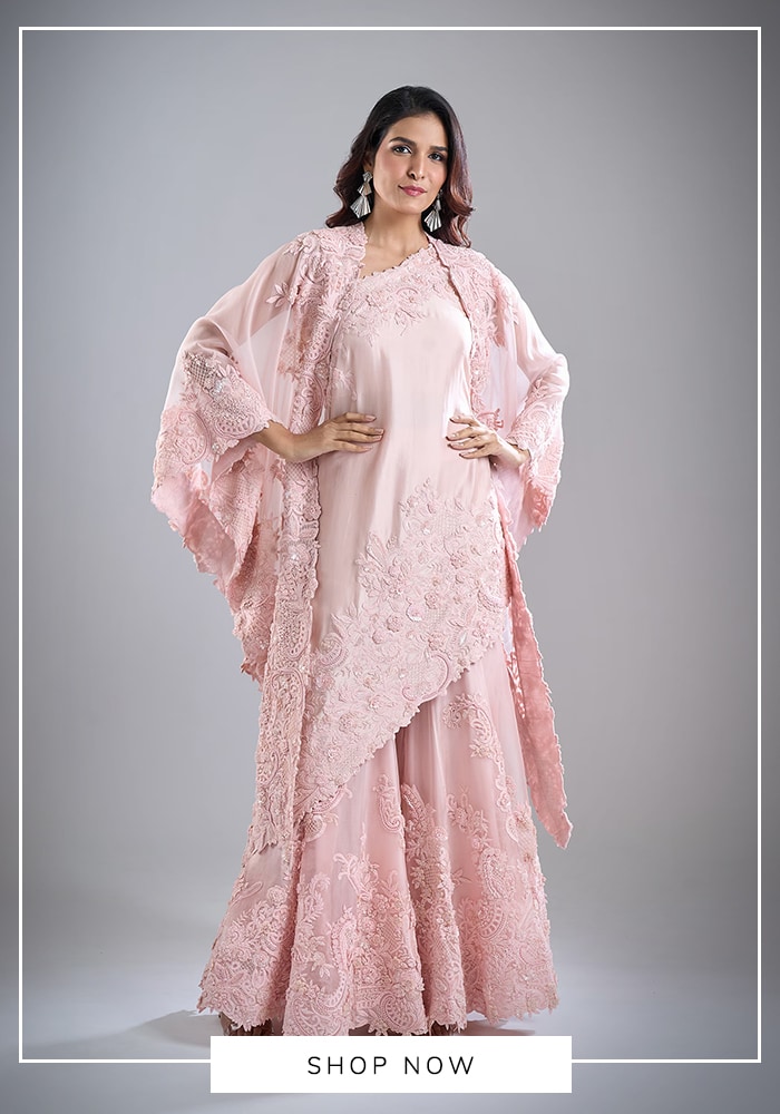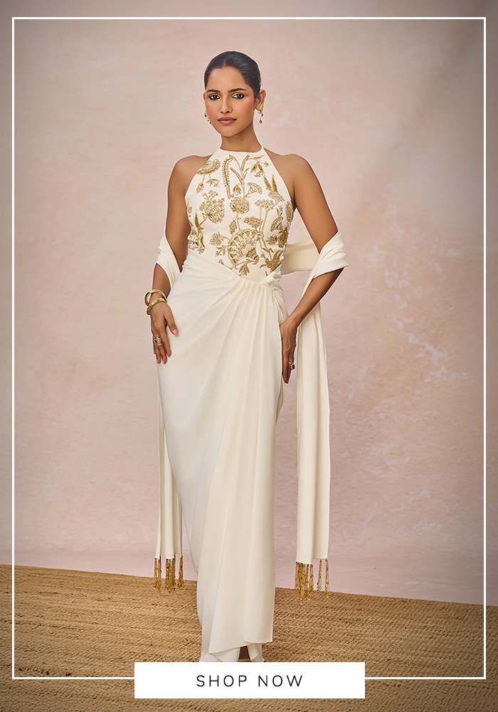Saksha & Kinni embody understated sophistication. Their designs whisper elegance rather than demand it, with muted palettes, intricate detailing, and silhouettes that move with effortless grace.