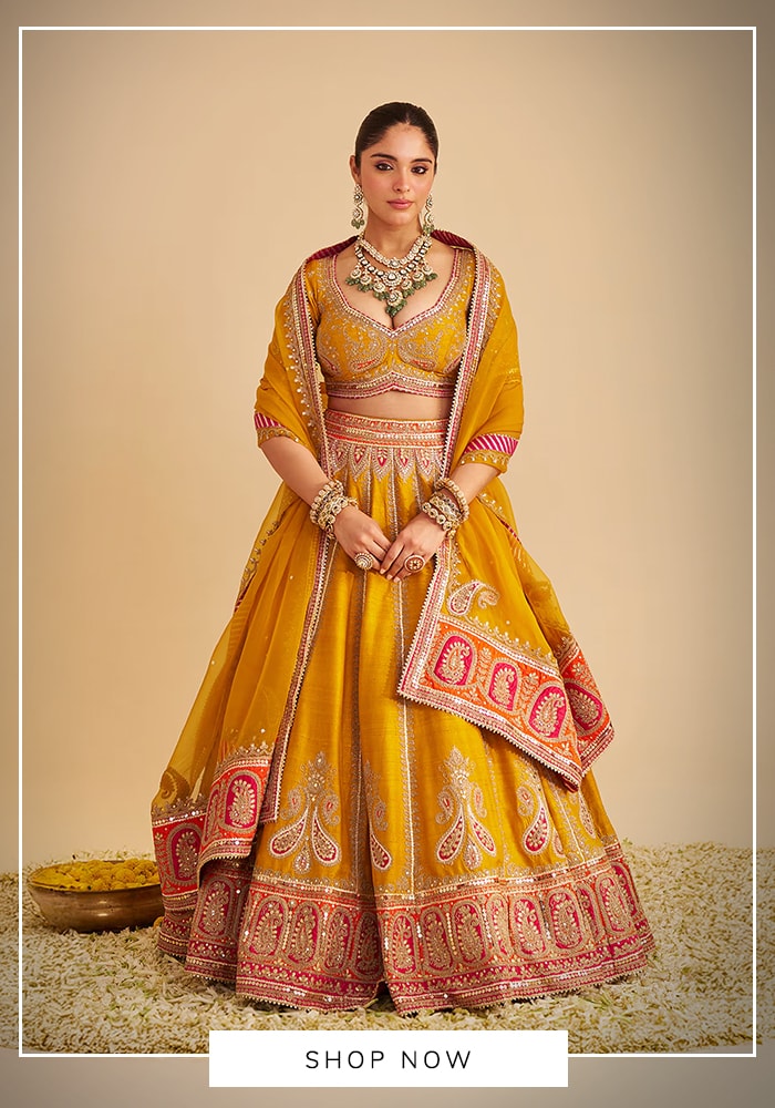 Her designs radiate joy, mirror-embellished lehengas, fluid drapes, and contemporary co-ord sets that strike the perfect balance between playful and polished. Each piece feels celebratory yet refined, crafted for the modern woman who embraces her individuality.