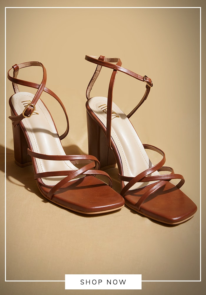 - Night: Swap the block heels for strappy sandals. Unbutton the top two buttons. Add a smoky eye and a statement cuff bracelet.