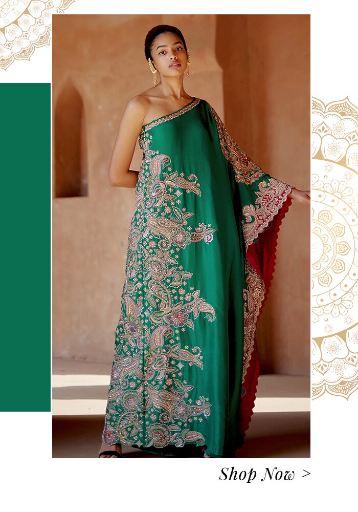 Well reading our title will certainly make you think of this combination as some sort of an abomination, but its really great! Kaftans with their lightweight, relaxed feel and delicate prints describe as a comfy-chic clothing, But, these breezy outfits can be made glam and occasion-ready outfits! Take a glimpse at our splendid lineup of designer Kaftans with a gorgeous Zardozi addition. From bold colors and vibrant prints to delicate threadwork, these kaftans are nothing short of a dreamy attire.