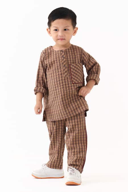 Add a traditional touch to your kid’s closet with the stylish yet comfortable kurta set for boys. The collection with fine craftsmanship ensures a fashion-forward look for the little trendsetters!