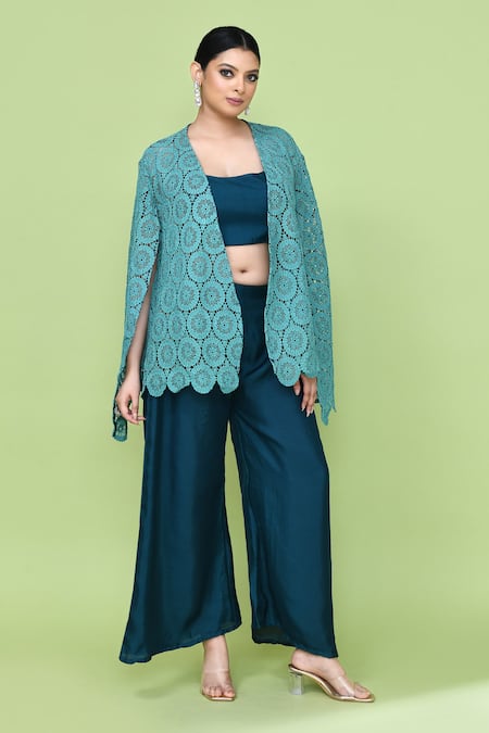Wren Embroidered Lace Mesh Shirt & Pant Set