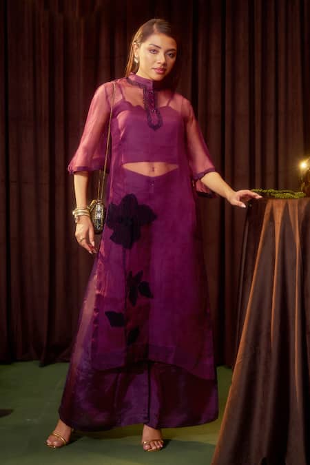 Gleia Fuchsia Satin Dress With Corded Jacket