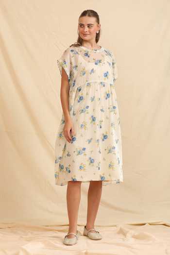 Floral Handwoven Cotton Silk Dress & Slip Set