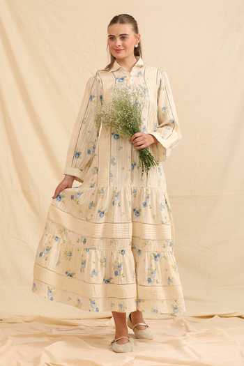 Floral Maxi Handwoven Cotton Silk Dress & Slip Set