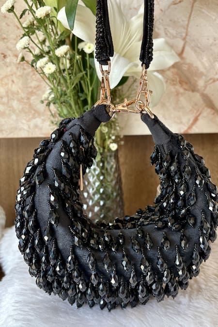 Velvet Floral Sequin & Pearl Embellished Clutch