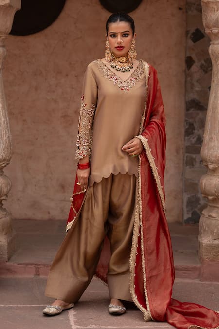 Hand Embroidered Kurta Farshi Salwar Set