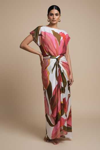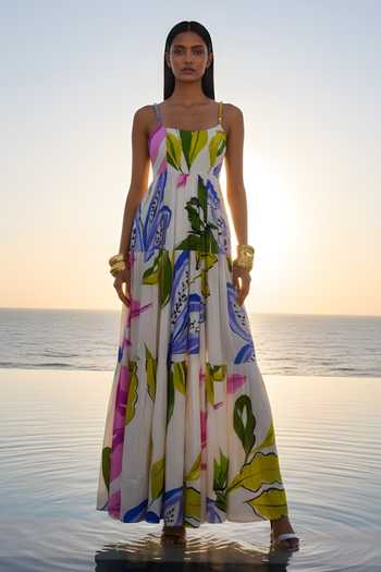 Floral Printed Bemberg Silk Maxi Dress