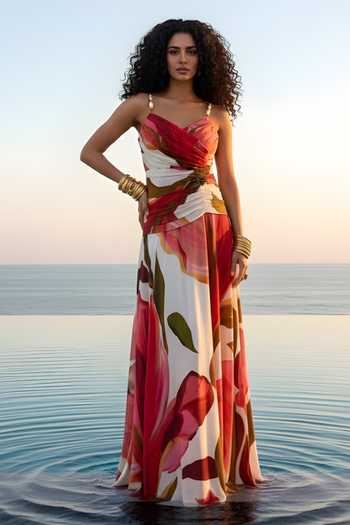 Ruched Floral Print Maxi Dress