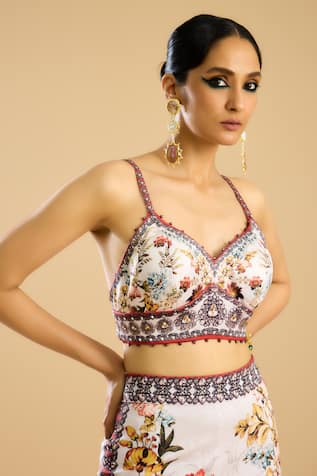 Kamini Saharan Bloom Print & Embroidered Tunic With Skirt