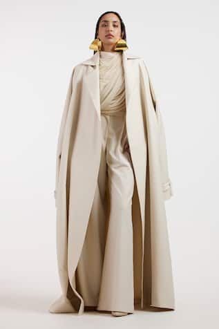 Alisa Solid Trench Coat With Jumpsuit