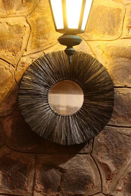 Black Seagrass, Mirror Glass Woven Round-shaped Decorative
