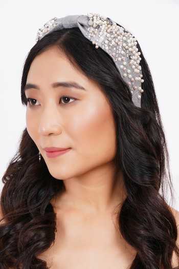 Buy_APT FOREVER_Grey Embroidery, Beads, Pearls, Pearlpatrator Delight Handmade Headband _Online_at_Aza_Fashions