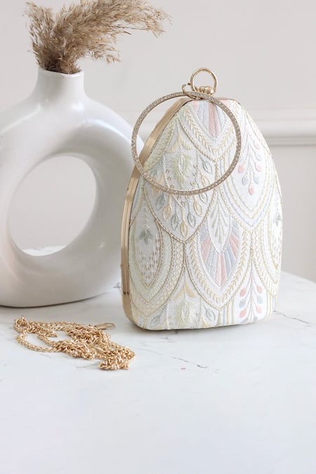 Buy_Boxwish By Bhumika_White Embroidery Floral Thread Clutch _Online_at_Aza_Fashions