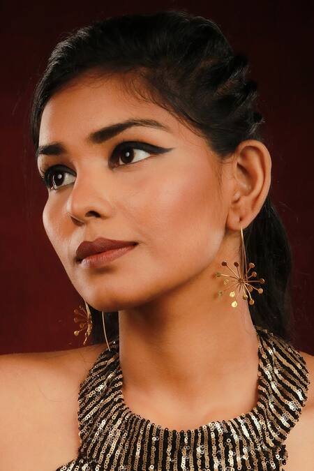 Buy_Ishhaara_Gold Plated Dandelion Pattern Earrings _Online_at_Aza_Fashions