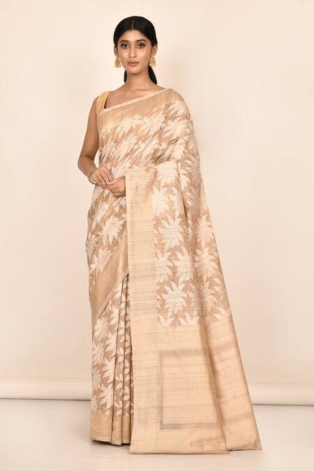 Buy_Khwaab By Sanjana Lakhani_Beige Khecha Silk Woven Saree_Online_at_Aza_Fashions