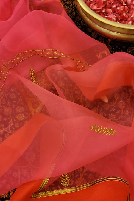 Neeta Bhargava Pink Organza Embroidered Dupatta