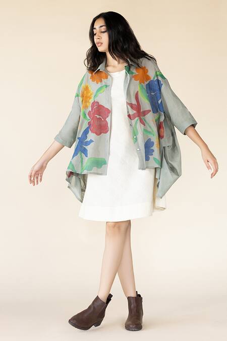 Buy_Purvi Doshi_Off White Handloom Cotton Round Neck Solid Dress_Online_at_Aza_Fashions