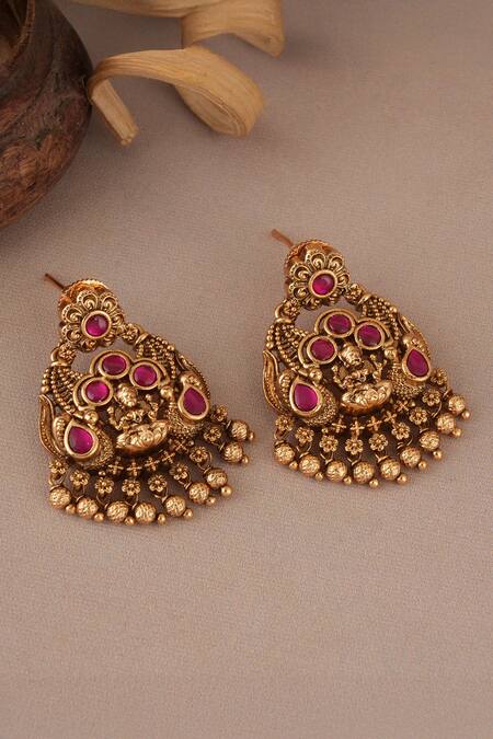 Antique gold maa lakshmi ball earrings made of brass alloy with gold plating