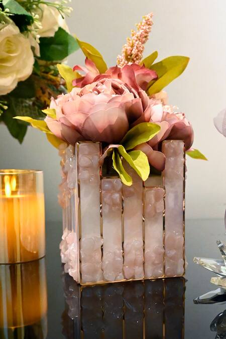 Pink Acrylic, Polymers Stone High Low Embellished Small Vase - Single Pc