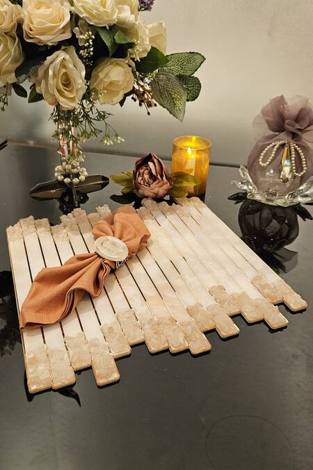 Buy_The Bling Edit_Pink Acrylic, Polymers, Stones And Glass High Low Textured Placemat_at_Aza_Fashions