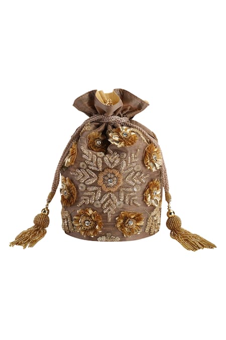 Brown Embroidery Hand Potli Bag