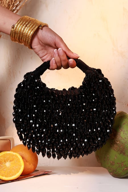 The Tan Clan_Black Beads, Sequins Jia Half Moon Bag _Online_at_Aza_Fashions