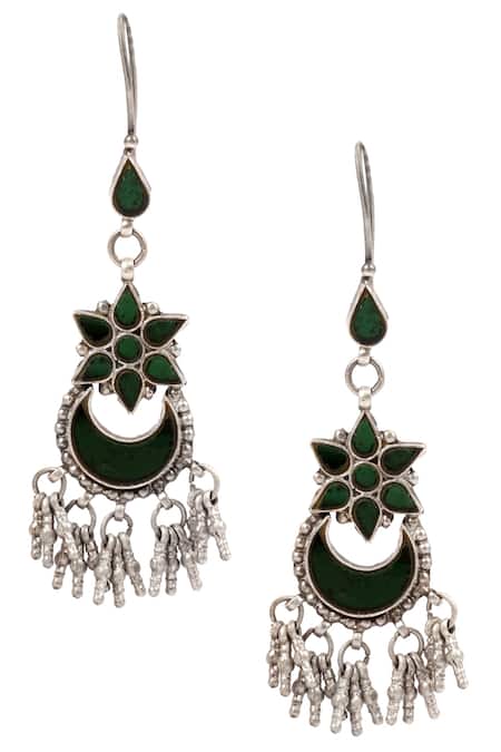 Green glass cutouts, Floral motif design, Crescent moon motif drop