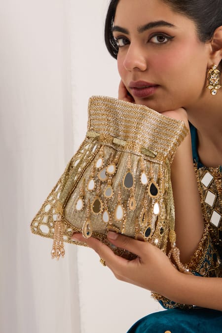 Indulge yourself in the opulent craftsmanship of designer handbags and elevate your traditional & contemporary looks with the captivating allure of potli bags, a perfect blend of style and tradition.