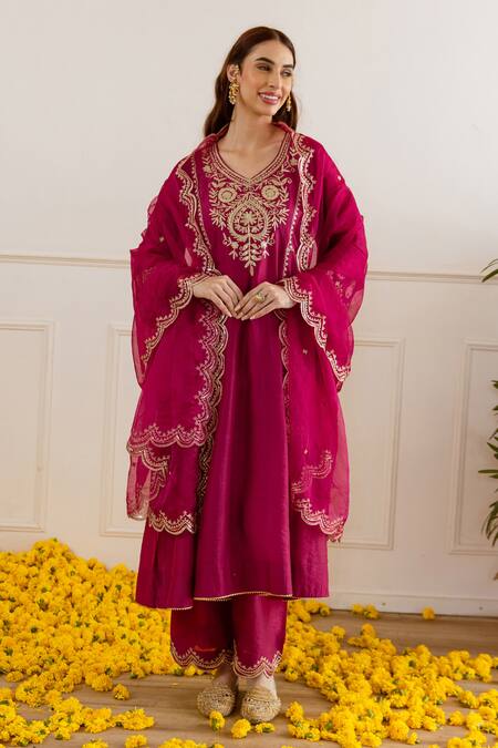 Zari Sequin Flora Embroidered Kurta Set