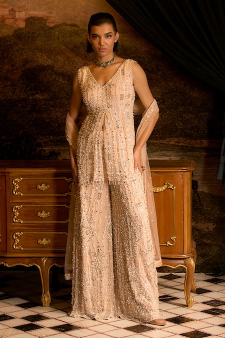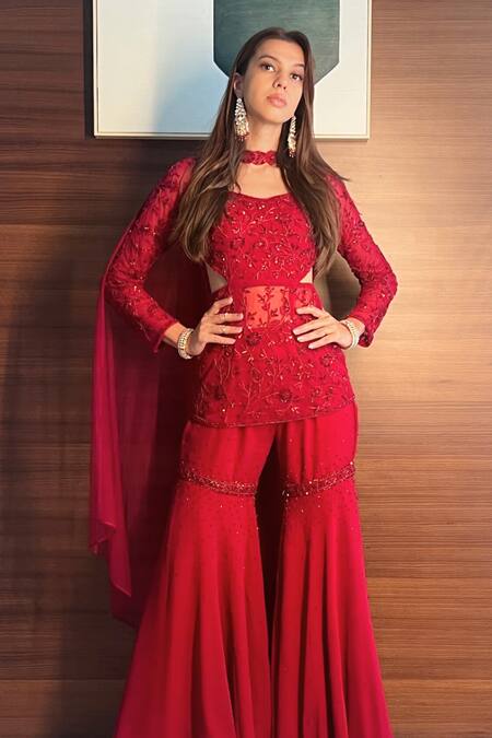 Diamond Embroidered Kurta Sharara Set